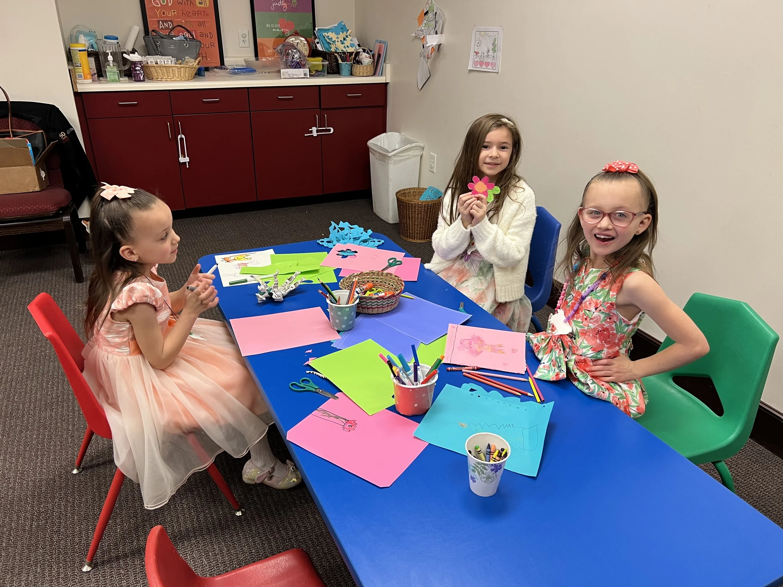 Godly Play is facilitated by Safe Church trained teachers and runs from 10:45 to 11:30 a.m. each Sunday morning. Classes are held in the Godly Play room upstairs. Following the conclusion of Godly Play, children are invited to rejoin adults in the church for the celebration of the Eucharist and conclusion of the service.
